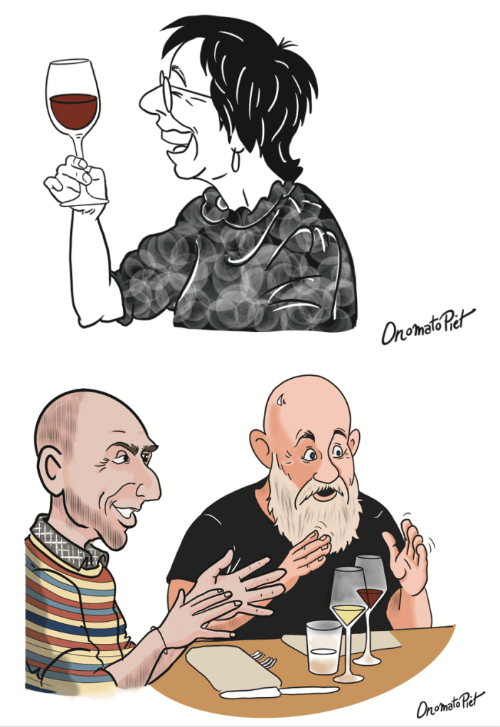 This was a first: sketching people live whilst they were eating in a restaurant, from a nearby table. Not my usual way of working, but a nice change from the ordinary.